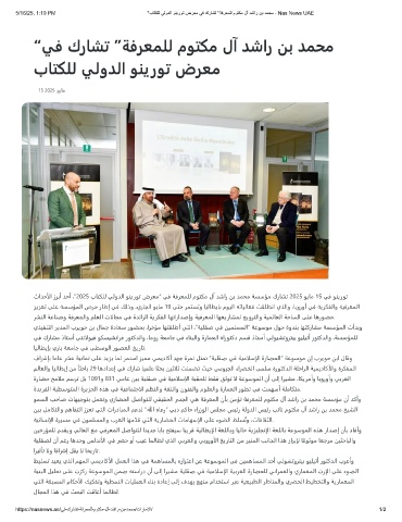 5/16/25, 1:19 PM "بﺎﺗﻛﻠﻟ ﻲﻟودﻟا وﻧﯾروﺗ ضرﻌﻣ ﻲﻓ كرﺎﺷﺗ "ﺔﻓرﻌﻣﻠﻟ موﺗﻛﻣ لآ دﺷار نﺑ دﻣﺣﻣ - Nas News UAE