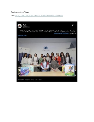 Publication: X – Al Tibrah Link: " سنوت يف ةباتكلل يلودلا يبد جمانربل ةيناثلا ةشرولا قلطت "ةفرعملل دشار نب دمحم ةسسؤم