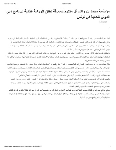 ،سﻧوﺗ ﻲﻓ ،ﺔﺳﱠﺳؤﻣﻠﻟ ﺔﯾﻓرﻌﻣﻟا تاردﺎﺑﻣﻟا زرﺑأ دﺣأ ،ﺔﺑﺎﺗﻛﻠﻟ ﻲﻟودﻟا ﻲﺑد ﺞﻣﺎﻧرﺑﻟ ﺔﯾﻧﺎﺛﻟا ﺔﺷروﻟا مﯾظﻧﺗ نﻋ ﺔﻓرﻌﻣﻠﻟ موﺗﻛﻣ لآ دﺷار نﺑ دﻣﺣﻣ ﺔﺳﱠﺳؤﻣ تﻧﻠﻋأ
