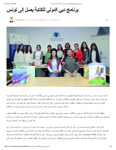 دﮭﻌﻣﻟا ﻲﻓ لﺻاوﺗﻟاو ﺔﯾزﯾﻠﺟﻧﻹا ﺔﻐﻠﻟا ةذﺎﺗﺳأو ﺔﯾﻋادﺑﻹا ﺔﺑﺎﺗﻛﻟا ﺔﺑردﻣ فارﺷﺈﺑ ،«لﺎﻔطﻷا صﺻﻘﻟ ﻲﻧﻔﻟا مﺳرﻟا ﺔﺷرو» ناوﻧﻋ تﺣﺗ ،سﻧوﺗ ﻲﻓ