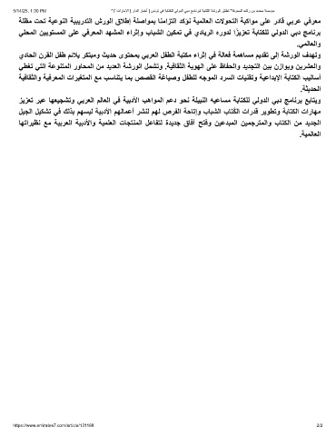 5/14/25, 1:30 PM "7 تارﺎﻣﻻا | رادﻟا رﺎﺑﺧأ | سﻧوﺗ ﻲﻓ ﺔﺑﺎﺗﻛﻠﻟ ﻲﻟودﻟا ﻲﺑد ﺞﻣﺎﻧرﺑﻟ ﺔﯾﻧﺎﺛﻟا ﺔﺷروﻟا ﻖﻠطﺗ "ﺔﻓرﻌﻣﻠﻟ دﺷار نﺑ دﻣﺣﻣ ﺔﺳﺳؤﻣ