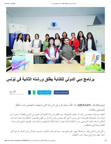 5/14/25, 1:29 PM سﻧوﺗ ﻲﻓ ﺔﯾﻧﺎﺛﻟا ﮫﺗﺷرو ﻖﻠطﯾ ﺔﺑﺎﺗﻛﻠﻟ ﻲﻟودﻟا ﻲﺑد ﺞﻣﺎﻧرﺑ