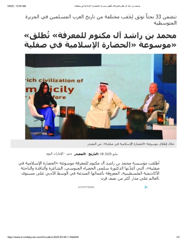 5/8/25, 10:04 AM «ﺔﯾﻠﻘﺻ ﻲﻓ ﺔﯾﻣﻼﺳﻹا ةرﺎﺿﺣﻟا» ﺔﻋوﺳوﻣ ﻖﻠطُﺗ «ﺔﻓرﻌﻣﻠﻟ موﺗﻛﻣ لآ دﺷار نﺑ دﻣﺣﻣ»