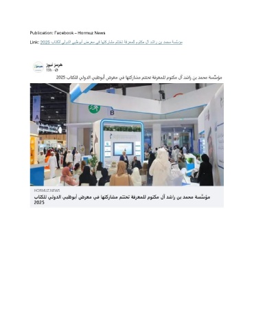 Publication: Facebook – Hormuz News Link: 2025 باتكلل يلودلا يبظوبأ ضرعم يف اهتكراشم متتخت ةفرعملل موتكم لآ دشار نب دمحم ةسَّسؤم