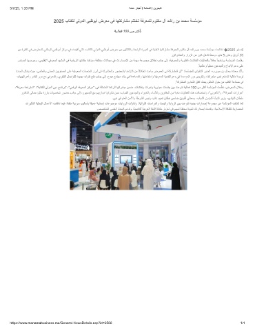 2025 بﺎﺗﻛﻠﻟ ﻲﻟودﻟا ﻲﺑظوﺑأ ضرﻌﻣ ﻲﻓ ﺎﮭﺗﻛرﺎﺷﻣ مﺗﺗﺧﺗ ﺔﻓرﻌﻣﻠﻟ موﺗﻛﻣ لآ دﺷار نﺑ دﻣﺣﻣ ﺔﺳﱠﺳؤﻣ
