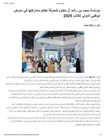 ﻲﺗﻟا ،بﺎﺗﻛﻠﻟ ﻲﻟودﻟا ﻲﺑظوﺑأ ضرﻌﻣ نﻣ نﯾﺛﻼﺛﻟاو ﺔﻌﺑارﻟا ةرودﻟا ﻲﻓ ﺔﯾﻧﻐﻟا ﺎﮭﺗﻛرﺎﺷﻣ ﺔﻓرﻌﻣﻠﻟ موﺗﻛﻣ لآ دﺷار نﺑ دﻣﺣﻣ ﺔﺳﱠﺳؤﻣ تﻣﺗﺗﺧا �2025 وﯾﺎﻣ 6