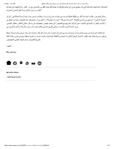 5/7/25, 1:31 PM 2025 بﺎﺗﻛﻠﻟ ﻲﻟودﻟا ﻲﺑظوﺑأ ضرﻌﻣ ﻲﻓ ﺎﮭﺗﻛرﺎﺷﻣ مﺗﺗﺧﺗ ﺔﻓرﻌﻣﻠﻟ موﺗﻛﻣ لآ دﺷار نﺑ دﻣﺣﻣ ﺔﺳﱠﺳؤﻣ