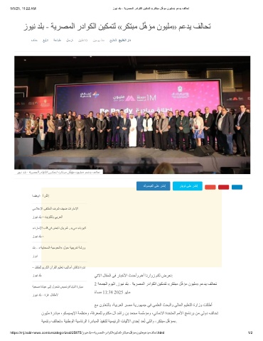 5/5/25, 11:22 AM زوﯾﻧ دﻠﺑ - ﺔﯾرﺻﻣﻟا رداوﻛﻟا نﯾﻛﻣﺗﻟ «رﻛﺗﺑﻣ لﱠھؤﻣ نوﯾﻠﻣ» مﻋدﯾ فﻟﺎﺣﺗ