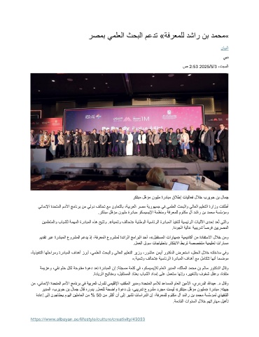 يئامنلإا ةدحتملا مملأا جمانرب نم يلود فلاحت عم نواعتلاب ،ةيبرعلا رصم ةيروهمج يف يملعلا ثحبلاو يلاعلا ميلعتلا ةرازو تقلطأ