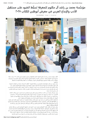 5/5/25, 11:16 AM ٢٠٢٥ بﺎﺗﻛﻠﻟ ﻲﺑظوﺑأ ضرﻌﻣ ﻲﻓ ﻲﺑرﻌﻟا عادﺑﻹاو بدﻷا لﺑﻘﺗﺳﻣ ﻰﻠﻋ ءوﺿﻟا طِﻠﺳﺗ ﺔﻓرﻌﻣﻠﻟ موﺗﻛﻣ لآ دﺷار نﺑ دﻣﺣﻣ ﺔﺳﱠﺳؤﻣ – Open Media Group