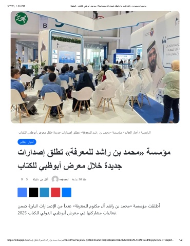 5/7/25, 1:36 PM ﺔﻘﯾﻘﺣﻟا - بﺎﺗﻛﻠﻟ ﻲﺑظوﺑأ ضرﻌﻣ لﻼﺧ ةدﯾدﺟ تارادﺻإ ﻖﻠطﺗ «ﺔﻓرﻌﻣﻠﻟ دﺷار نﺑ دﻣﺣﻣ» ﺔﺳﺳؤﻣ
