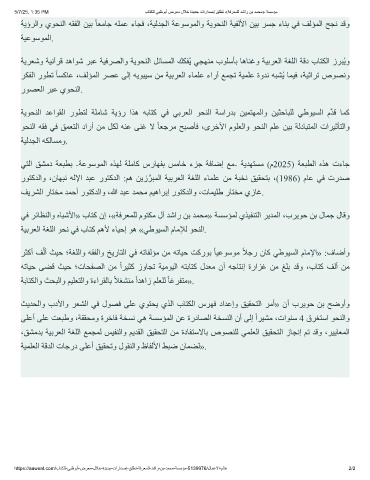ﺔﯾﻮﺤﻨﻟا ﺪﻋاﻮﻘﻟا رﻮﻄﺘﻟ ﺔﻠﻣﺎﺷ ﺔﯾؤر اﺬھ ﮫﺑﺎﺘﻛ ﻲﻓ ﻲﺑﺮﻌﻟا ﻮﺤﻨﻟا ﺔﺳارﺪﺑ ﻦﯿﻤﺘﮭﻤﻟاو ﻦﯿﺜﺣﺎﺒﻠﻟ ﻲطﻮﯿﺴﻟا مﱠﺪﻗ ﺎﻤﻛ
