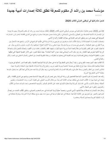 ةدﯾدﺟ ﺔﻋوﻣﺟﻣ ،ﺔﻓرﻌﻣﻠﻟ موﺗﻛﻣ لآ دﺷار نﺑ دﻣﺣﻣ ﺔﺳﱠﺳؤﻣ تﻘﻠطأ ،2025 بﺎﺗﻛﻠﻟ ﻲﻟودﻟا ﻲﺑظوﺑأ ضرﻌﻣ ﻲﻓ ﺎﮭﺗﻛرﺎﺷﻣ تﺎﯾﻟﺎﻌﻓ نﻣﺿ -2025 وﯾﺎﻣ 04