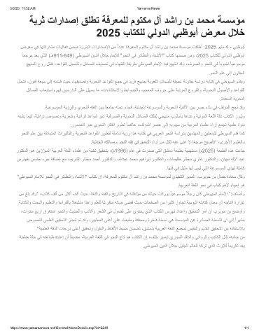 ضرﻌﻣ ﻲﻓ ﺎﮭﺗﻛرﺎﺷﻣ تﺎﯾﻟﺎﻌﻓ نﻣﺿ ةزرﺎﺑﻟا تارادﺻﻹا نﻣ ًاددﻋ ﺔﻓرﻌﻣﻠﻟ موﺗﻛﻣ لآ دﺷار نﺑ دﻣﺣﻣ ﺔﺳﺳؤﻣ تﻘﻠطأ :2025 وﯾﺎﻣ 4 - ﻲﺑظوﺑأ