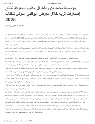 ضرﻌﻣ ﻲﻓ ﺎﮭﺗﻛرﺎﺷﻣ تﺎﯾﻟﺎﻌﻓ نﻣﺿ ةزرﺎﺑﻟا تارادﺻﻹا نﻣ ًاددﻋ ﺔﻓرﻌﻣﻠﻟ موﺗﻛﻣ لآ دﺷار نﺑ دﻣﺣﻣ ﺔﺳﺳؤﻣ تﻘﻠطأ :2025 وﯾﺎﻣ 4 - ﻲﺑظوﺑأ