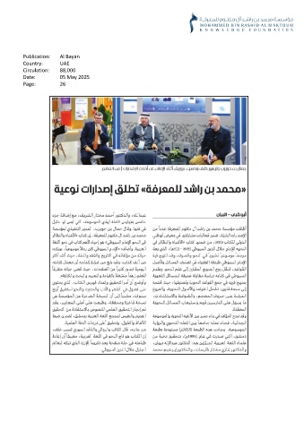 Publication: Al Bayan Country: UAE Circulation: 88,000 Date: 05 May 2025 Page: 26