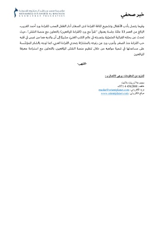 ﺔﺴﺳﺆﻤﻠﻟ ﺮﻜﺸﻟﺎﺑ ﻪﺟﻮﺗ ﺎﻤﻛ ،ي ﺑﺮﻌﻟا ةءاﺮﻘﻟا يﺪﺤﺘﺑ ﺔﻛرﺎﺸﻤﻟﺎﺑ ﻪﺘﺒﻏر ﻦﻋ درو بﺮﻋأو .ﺮﻐﺼﻟا ﺬﻨﻣ ةءاﺮﻘﻟا ﺐﺣ