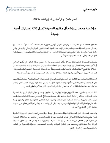 ﻦﺑ ﺪﻤﺤﻣ ﺔﺴﺳﺆﻣ ﺖﻘﻠﻃأ ، 2025 بﺎﺘﻜﻠﻟ يﻟوﺪﻟا ﻲﺒﻇﻮﺑأ ضﺮﻌﻣ ي ﻓ ﺎﻬﺘﻛرﺎﺸﻣ تﺎﻴﻟﺎﻌﻓ ﻦﻤﺿ - 2025 ﻮﻳﺎﻣ 04