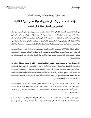 ﻦﻤﻣ ،بﺮﻌﻟاو ﻦﻴﻴﺴﻧﻮﺘﻟا بﺎﺒﺸﻟا ﻦﻣ ﻞﻔﻄﻟا بدﺄﺑ ﻦﻴﻤﺘﻬﻤﻟا فﺪﻬﺘﺴﺗ ﺔﻔﺜﻜﻣ ﺔﻳرﻮﻀﺣ ﺔﻴﻠﻤﻋ ﺔﺷرو ةﺮﺸﻋ ﺎﺘﻨﺛا