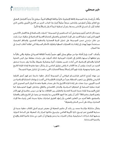 ﻲﻤﻳدﺎﻛﻷا ﻞﻤﻌﻟا اﺬﻫ ي ﻓ ﺔﻤﻫﺎﺴﻤﻟﺎﺑ ﺖﻓﺮﺸﺗ " :ﺔﻋﻮﺳﻮﻤﻟا ي ﻓ ﻦﻴﻤﻫﺎﺴﻤﻟا ﺪﺣأ يﻟﻮﺸﺗوﺮﺘﻴﺑ ﻮﻴﻠﻴﺗأ رﻮﺘﻛﺪﻟا لﺎﻗ ، هروﺪﺑ