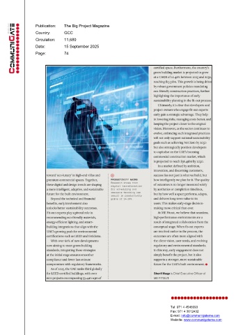 Publication: The Big Project Magazine Country: GCC Circulation: 11,680 Date: 15 September 2025 Page: 74 Tel: 971 4 4546093 Fax: 971 4 3612432 E-mail: info@communigateme.com Website: www.communigateme.com
