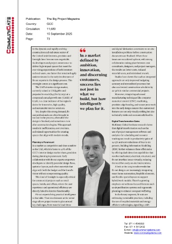 Publication: The Big Project Magazine Country: GCC Circulation: 11,680 Date: 15 September 2025 Page: 73 Tel: 971 4 4546093 Fax: 971 4 3612432 E-mail: info@communigateme.com Website: www.communigateme.com