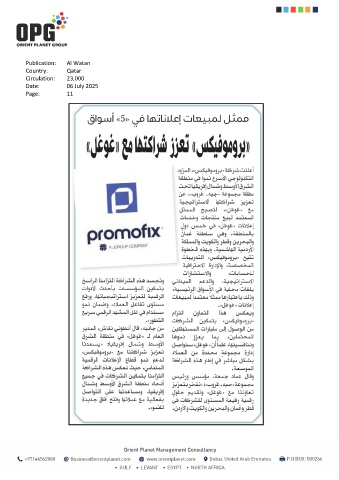 Publication: Al Watan Country: Qatar Circulation: 23,000 Date: 06 July 2025 Page: 11