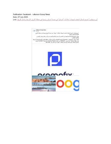 Publication: Facebook – Lebanon Scoop News Date: 07 July 2025 Link: ايقيرفأ لامشو طسولأا قرشلا ةقطنم يف ةيسيئر قاوسأ ةسمخ يف "لغوغ" تانلاعإ تاعيبمل دمتعملا لثمملا حبصت "سكيفومورب"