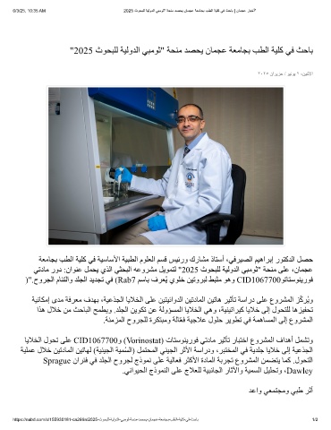 6/3/25, 10:35 AM 2025 ثوﺣﺑﻠﻟ ﺔﯾﻟودﻟا ﻲﺑﻣوﺛ" ﺔﺣﻧﻣ دﺻﺣﯾ نﺎﻣﺟﻋ ﺔﻌﻣﺎﺟﺑ بطﻟا ﺔﯾﻠﻛ ﻲﻓ ثﺣﺎﺑ | نﺎﻣﺟﻋ رﺎﺑﺧأ"