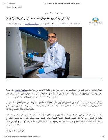 6/3/25, 10:35 AM 2025 ثوﺣﺑﻠﻟ ﺔﯾﻟودﻟا ﻲﺑﻣوﺛ" ﺔﺣﻧﻣ دﺻﺣﯾ نﺎﻣﺟﻋ ﺔﻌﻣﺎﺟﺑ بطﻟا ﺔﯾﻠﻛ ﻲﻓ ثﺣﺎﺑ"