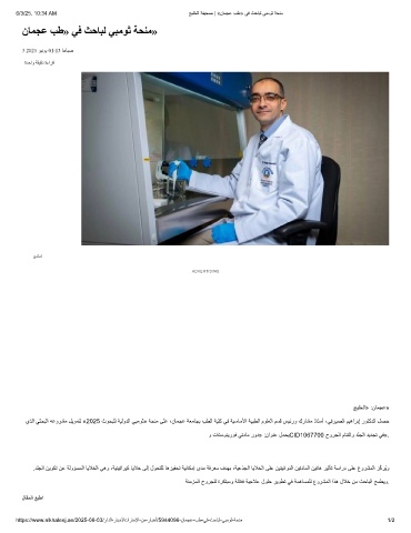 يذﻟا ﻲﺛﺣﺑﻟا ﮫﻋورﺷﻣ لﯾوﻣﺗﻟ «2025 ثوﺣﺑﻠﻟ ﺔﯾﻟودﻟا ﻲﺑﻣوﺛ» ﺔﺣﻧﻣ ﻰﻠﻋ ،نﺎﻣﺟﻋ ﺔﻌﻣﺎﺟﺑ بطﻟا ﺔﯾﻠﻛ ﻲﻓ ﺔﯾﺳﺎﺳﻷا ﺔﯾﺑطﻟا موﻠﻌﻟا مﺳﻗ سﯾﺋرو كرﺎﺷﻣ ذﺎﺗﺳأ ،ﻲﻓرﯾﺻﻟا مﯾھارﺑإ روﺗﻛدﻟا لﺻﺣ