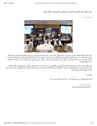 6/9/25, 10:39 AM نﯾﯾﻧورﺗﻛﻟﻹاو نﯾﯾﺋﺎﺑرﮭﻛﻟا نﯾﺳدﻧﮭﻣﻠﻟ «رﺷﻋ ﻊﺳﺎﺗﻟا ﻲﺑﻼطﻟا موﯾﻟا» ﺞﺋﺎﺗﻧ نﻼﻋإ | ﺔﯾﺗارﺎﻣﻹا ﺞﯾﻠﺧﻟا ﺔﻔﯾﺣﺻ