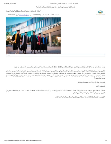 6/10/25, 11:12 AM نﺎﻣﺟﻋ ﺔﻌﻣﺎﺟ" ﻲﻓ ةدﯾدﺟ ﺔﯾﻣﯾدﺎﻛأ ﺞﻣارﺑ 10 نﻣ رﺛﻛأ قﻼطإ"