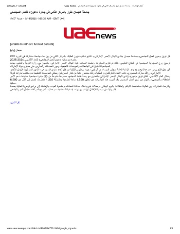 6/16/25, 11:35 AM UAE News - ﻲﻌﻣﺗﺟﻣﻟا لﻣﻌﻠﻟ «نوﻋ» ةزﺋﺎﺟ ﻲﻓ ﻲﻧﺎﺛﻟا زﻛرﻣﻟﺎﺑ زوﻔﺗ نﺎﻣﺟﻋ ﺔﻌﻣﺎﺟ - تارﺎﻣﻹا رﺎﺑﺧأ