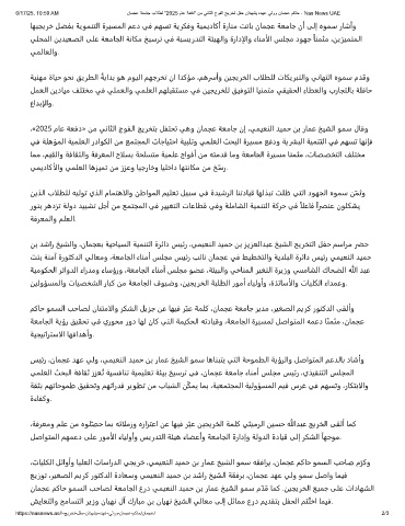 6/17/25, 10:59 AM نﺎﻣﺟﻋ ﺔﻌﻣﺎﺟ بﻼطﻟ "2025 مﺎﻋ ﺔﻌﻓد" نﻣ ﻲﻧﺎﺛﻟا جوﻔﻟا ﺞﯾرﺧﺗ لﻔﺣ نادﮭﺷﯾ هدﮭﻋ ﻲﻟوو نﺎﻣﺟﻋ مﻛﺎﺣ - Nas News UAE