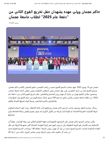 6/17/25, 10:59 AM نﺎﻣﺟﻋ ﺔﻌﻣﺎﺟ بﻼطﻟ "2025 مﺎﻋ ﺔﻌﻓد" نﻣ ﻲﻧﺎﺛﻟا جوﻔﻟا ﺞﯾرﺧﺗ لﻔﺣ نادﮭﺷﯾ هدﮭﻋ ﻲﻟوو نﺎﻣﺟﻋ مﻛﺎﺣ - Nas News UAE