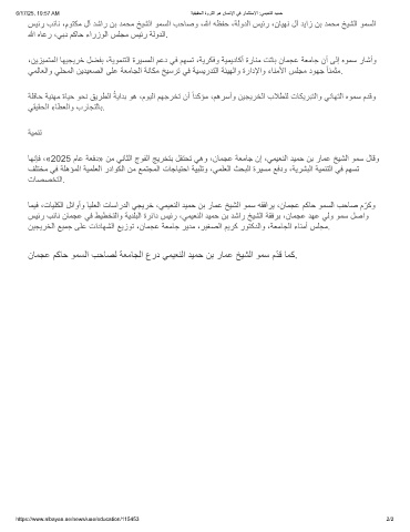 ﺎﮭﻧﺈﻓ ،«2025 مﺎﻋ ﺔﻌﻓد» نﻣ ﻲﻧﺎﺛﻟا جوﻔﻟا ﺞﯾرﺧﺗﺑ لﻔﺗﺣﺗ ﻲھو ،نﺎﻣﺟﻋ ﺔﻌﻣﺎﺟ نإ ،ﻲﻣﯾﻌﻧﻟا دﯾﻣﺣ نﺑ رﺎﻣﻋ ﺦﯾﺷﻟا وﻣﺳ لﺎﻗو