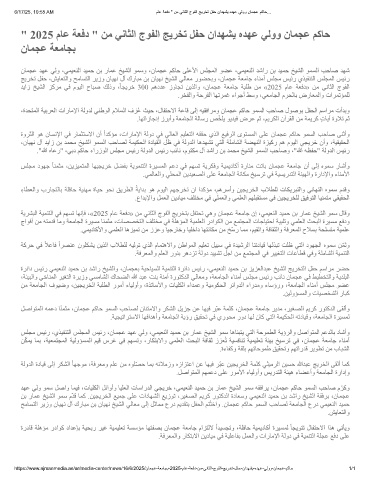 https://www.ajmanmedia.ae/ar/media-center/news/16/6/2025/نﺎﻣﺟﻋ-ﺔﻌﻣﺎﺟﺑ-2025-مﺎﻋ-ﺔﻌﻓد-نﻣ-ﻲﻧﺎﺛﻟا-جوﻔﻟا-ﺞﯾرﺧﺗ-لﻔﺣ-نادﮭﺷﯾ-هدﮭﻋ-ﻲﻟوو-نﺎﻣﺟﻋ-مﻛﺎﺣ 1/1