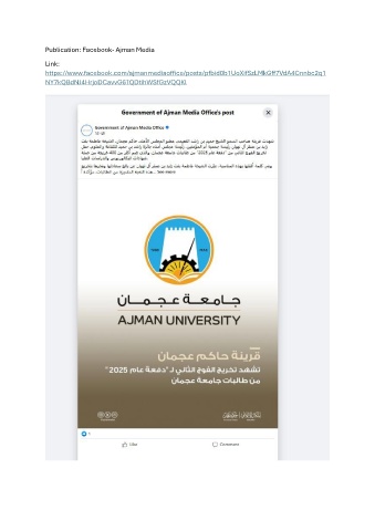 Publication: Facebook- Ajman Media Link: https://www.facebook.com/ajmanmediaoffice/posts/pfbid0b1UoXifSzLMkGff7VdA4Cnnbc2q1 NY7kQBdNJ4HrjoDCavvG6TQDtihWSfGzVQQKl