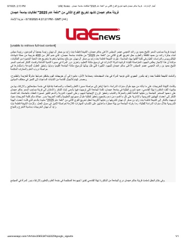 6/19/25, 2:13 PM UAE News - نﺎﻣﺟﻋ ﺔﻌﻣﺎﺟ تﺎﺑﻟﺎطﻟ "2025 مﺎﻋ ﺔﻌﻓد" نﻣ ﻲﻧﺎﺛﻟا جوﻔﻟا ﺞﯾرﺧﺗ دﮭﺷﺗ نﺎﻣﺟﻋ مﻛﺎﺣ ﺔﻧﯾرﻗ - تارﺎﻣﻹا رﺎﺑﺧأ