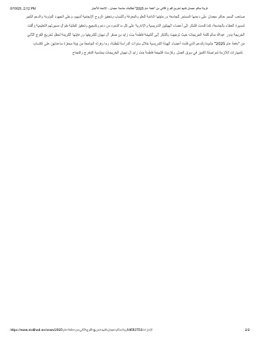 6/19/25, 2:12 PM رﺎﺑﺧﻸﻟ دﺎﺣﺗﻻا - نﺎﻣﺟﻋ ﺔﻌﻣﺎﺟ تﺎﺑﻟﺎطﻟ "2025 مﺎﻋ ﺔﻌﻓد" نﻣ ﻲﻧﺎﺛﻟا جوﻔﻟا ﺞﯾرﺧﺗ دﮭﺷﺗ نﺎﻣﺟﻋ مﻛﺎﺣ ﺔﻧﯾرﻗ