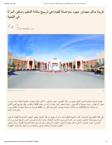 6/19/25, 2:10 PM ﺔﯾﻣﻧﺗﻟا ﻲﻓ ةأرﻣﻟا نﯾﻛﻣﺗو مﯾﻠﻌﺗﻟا ﺔﻧﺎﻛﻣ ﺦﯾﺳرﺗ ﻲﻓ ةدﺎﯾﻘﻠﻟ ﺔﻠﺻاوﺗﻣ دوﮭﺟ :نﺎﻣﺟﻋ مﻛﺎﺣ ﺔﻧﯾرﻗ