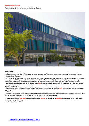 ﻰﻠﻋأ وھو ،ﻲﺿﺎﻣﻟا مﺎﻌﻟﺎﺑ ﺔﻧرﺎﻘﻣ ﺔﺑﺗرﻣ 37 ً ﺔﻣّدﻘﺗﻣ ، 2026 مﺎﻌﻟ تﺎﻌﻣﺎﺟﻠﻟ ﻲﻣﻟﺎﻌﻟا « سإ وﯾﻛ » ﺔﺳﺳؤﻣ فﯾﻧﺻﺗ نﻣﺿ مﻟﺎﻌﻟا ىوﺗﺳﻣ ﻰﻠﻋ 440 لا ﺔﺑﺗرﻣﻟا ﻰﻟإ نﺎﻣﺟﻋ ﺔﻌﻣﺎﺟ تﻘﺗرا