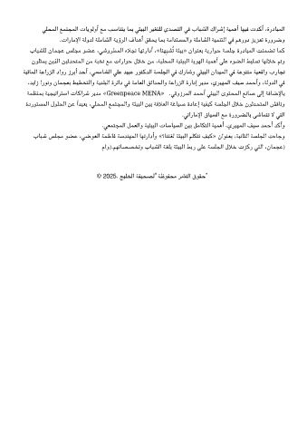 ﻠﺤﻤﻟا ﻊﻤﺘﺠﻤﻟا تﺎﻳﻮﻟوأ ﻊﻣ ﺐﺳﺎﻨﺘﻳ ﺎﻤﺑ ﺌﻴﺒﻟا ﺮﻴﻐﺘﻠﻟ يﺪﺼﺘﻟا ﻓ بﺎﺒﺸﻟا كاﺮﺷإ ﺔﻴﻤﻫأ ﺎﻬﻴﻓ تﺪﻛأ ،ةردﺎﺒﻤﻟا