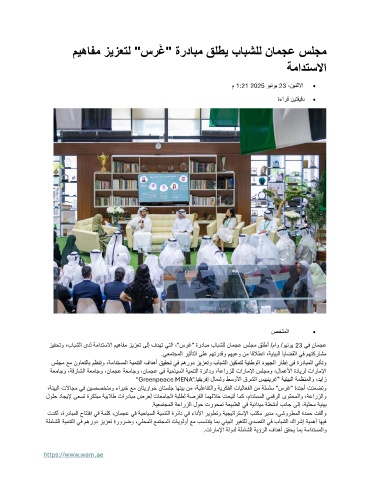 زيفحتو ،بابشلا ىدل ةمادتسلاا ميهافم زيزعت ىلإ فدهت يتلا ،"سرَغ" ةردابم بابشلل نامجع سلجم قلطأ /ماو /وينوي 23 يف نامجع