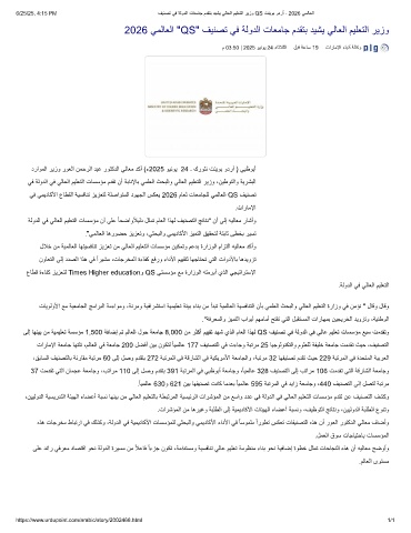 6/25/25, 4:15 PM فﯾﻧﺻﺗ ﻲﻓ ﺔﻟودﻟا تﺎﻌﻣﺎﺟ مدﻘﺗﺑ دﯾﺷﯾ ﻲﻟﺎﻌﻟا مﯾﻠﻌﺗﻟا رﯾزو QS تﻧﯾوﺑ ودرأ - 2026 ﻲﻣﻟﺎﻌﻟا