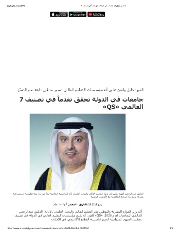 6/25/25, 4:03 PM 7 فﯾﻧﺻﺗ ﻲﻓ ً ﺎﻣدﻘﺗ ﻖﻘﺣﺗ ﺔﻟودﻟا ﻲﻓ تﺎﻌﻣﺎﺟ «QS» ﻲﻣﻟﺎﻌﻟا
