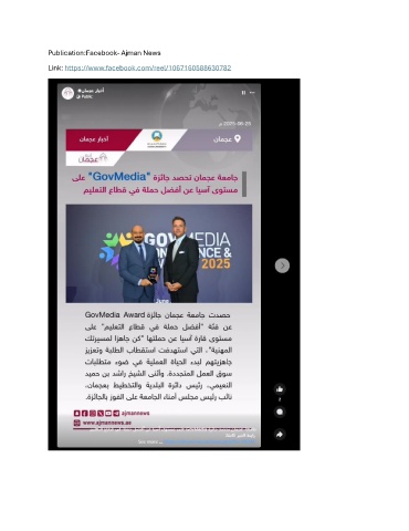 Publication:Facebook- Ajman News Link: https://www.facebook.com/reel/1067160588630782