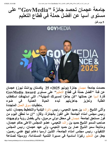 6/30/25, 8:54 AM ةزﺋﺎﺟ دﺻﺣﺗ نﺎﻣﺟﻋ ﺔﻌﻣﺎﺟ GovMedia ٹﻧﺋاوﺑ نﺎﺗﺳﮐﺎﺑ | مﯾﻠﻌﺗﻟا عﺎطﻗ ﻲﻓ ﺔﻠﻣﺣ لﺿﻓأ نﻋ ﺎﯾﺳآ ىوﺗﺳﻣ ﻰﻠﻋ