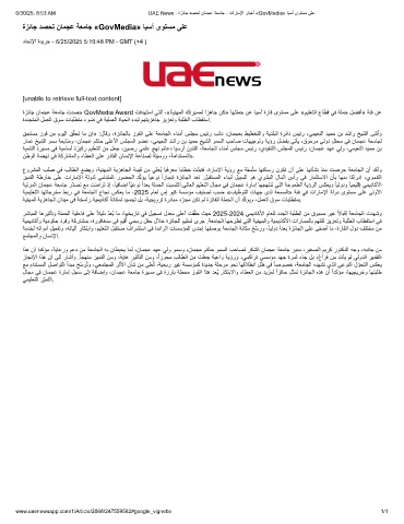 6/30/25, 8:53 AM UAE News - ةزﺋﺎﺟ دﺻﺣﺗ نﺎﻣﺟﻋ ﺔﻌﻣﺎﺟ - تارﺎﻣﻹا رﺎﺑﺧأ «GovMedia» ﺎﯾﺳآ ىوﺗﺳﻣ ﻰﻠﻋ